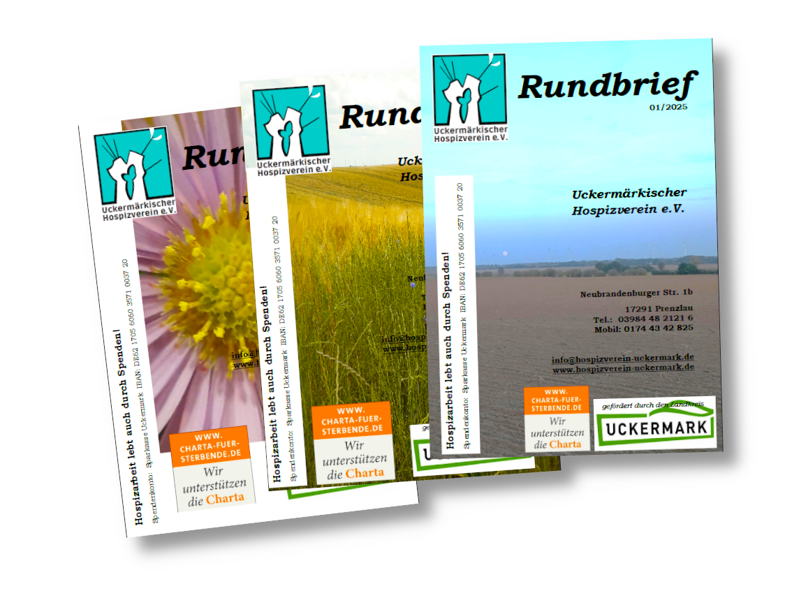 Unser Rundbrief gibt Einblicke, erzählt Geschichten, begleitet unsere Arbeit und bündelt Termine zur Hospizarbeit in der Uckermark. Stöbern Sie gern im aktuellen Brief.
